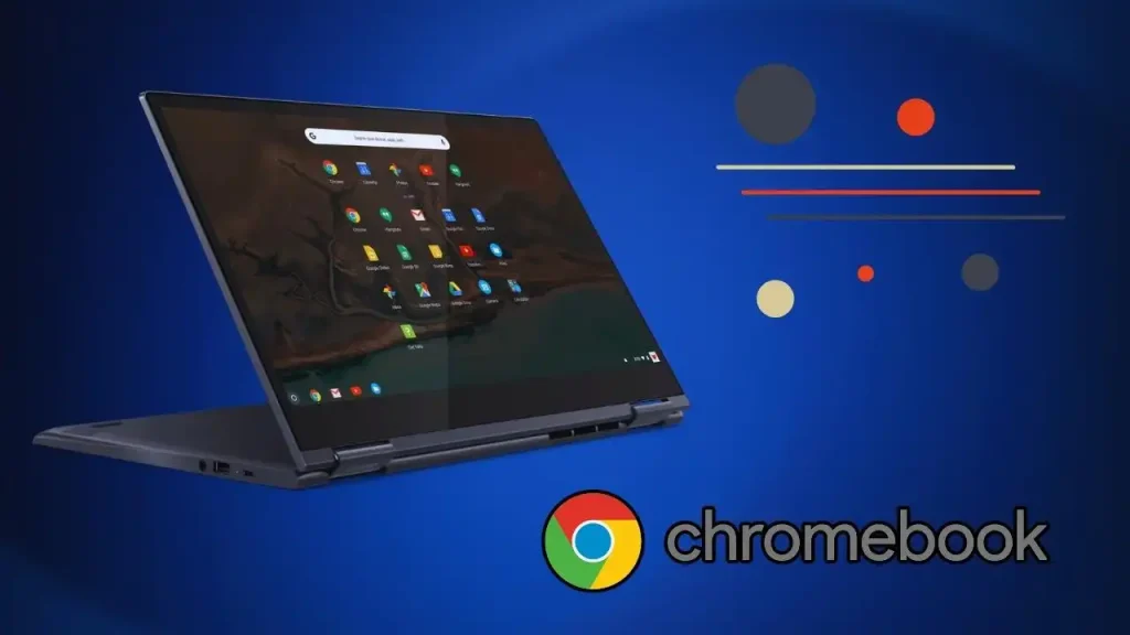 The Chromebook can be turned on or off by pressing the power button, which is generally at the top right or center of the keyboard.